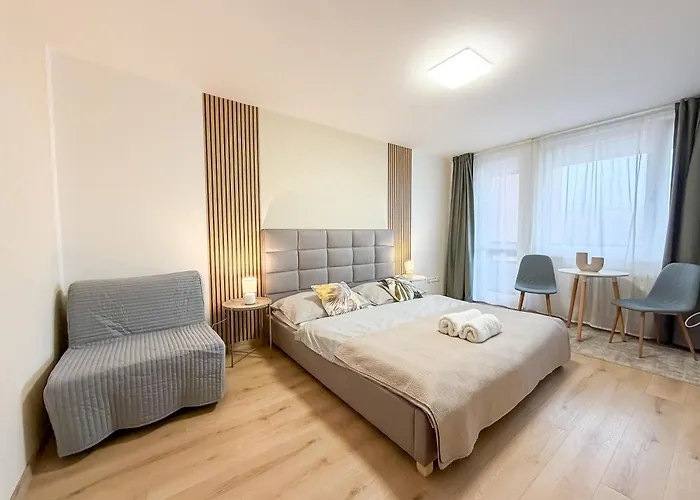 Tento 1-izbový apartmán je vzdialený 10 minút jazdy od 196-metrovej televíznej veže Kamzík TV Tower a 10 minút jazdy od Slavína. Kacin je vzdialený 4 km od apartmánu.